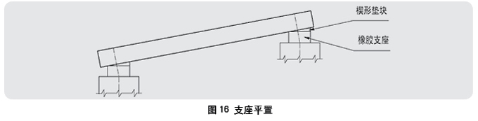 4.1普通板式橡膠支座的安裝 7.1.1現(xiàn)澆梁橡膠支座的安裝 A、先將支座墊石頂面清理干凈,若激臺墊石的標高差距過大,可用水泥砂漿調(diào)整。 B、在支座墊石上按設(shè)計圖標出支座位置中心線,同時在橡膠支座上也標出十字交叉中心線,將橡膠支座 的中心線與墊石中心線相吻合,支座即就位準確。 C、在澆注混凝土梁體前,在橡肢支座上設(shè)一塊比支座平面稍大的支承鋼板、鋼板焊錫固筋與梁體連接。 將支承鋼板視為現(xiàn)澆梁模板的一部分進行澆注。為防止漏漿,可在支承鋼板與模板四周空隙處,用棉砂、油灰 或其它物質(zhì)填設(shè)。 8.1.2預制梁橡膠支座的安裝 A、首先將橡膠支座按設(shè)計要求直接放置在支座墊石上,墊石上面必須亊先清理干凈,并保證平整,然后 將上部構(gòu)造直接安放在支座上。 B、架梁落梁安裝時應(yīng)平穩(wěn),防止支座偏心受壓或產(chǎn)生初始剪切變形。 C、在T型梁安裝時,若支座比梁肋底寬(應(yīng)盡量避免),則應(yīng)在支座與梁底之間用鋼筋混凝土墊塊或厚 鋼板作過渡,以免橡膠支座受力面積減少造成應(yīng)力集中。 8.1.3普通板式橡膠支座的安裝亊項 A、支座安裝時,必須保證位置準確,調(diào)整時,避免產(chǎn)生過大的剪切變形,安裝時間最好在相當于全年平 均氣湛時進行,以保證因低溫或高溫時造成支座偏離中心的位置不致過大,減少剪切變形。 如必須在高溫或低溫時安裝,可采取以下措施。 a待到全年平均氣溫時,頂起主梁、將支座調(diào)整到中心位置。 b在安裝時根據(jù)當時氣湛計算使支座產(chǎn)生預變形。 c也可以在設(shè)計選用橡膠支座時,適當增高支座髙度,使其比原設(shè)計支座的剪切變形量大。 B、要保證支座和墩臺及主梁緊密結(jié)合成一體,與橡膠支座接觸的上部構(gòu)造底面和墩臺面必須清潔平整。 如不平整要用水泥砂漿找平。 C、使用普通板式橡膠支座一般沒用固定纗與活動端之分,使用等髙支座時,上部構(gòu)造的水平位移由同一 片梁兩纗支座的剪切變形共同完成,各承擔一半。也可用厚度較小的橡膠支座作固定支座。 D、當梁體在縱向有坡度時,可按以下幾種情況分別處理。 a梁體縱坡<=1%時,縱坡由支座墊石調(diào)整支座斜置。如圖15 b梁體縱坡時,在梁底與支座之間粘結(jié)一塊與梁縱坡一致的楔型墊塊,支座平置。如圖16 也可采用梁底一端削去與坡度相一致的一角,在另一端補上與削去部分相等的一角,使支座平置。如圖17 C為了方便施工可直接選用坡度板式橡膠支座。 E支座安裝時,要考慮到以后更換調(diào)整橡膠支座的需要,通常采用在支座周邊空間設(shè)置各種凹樁以便安 放千斤頂。4.2聚四氟乙烯滑板式橡膠支座的安裝 7.2.1四氟板式橡膠支座的構(gòu)造與聯(lián)接 a構(gòu)造:四氟支座的整體結(jié)構(gòu)有“封閉型”和“簡易型”兩種。對城市橋梁及紫外線輯射、空氣污染與 粉塵嚴重地區(qū),選用封閉型結(jié)構(gòu),其它場合可采用簡易型。簡易型和封閉型分別見圖18和圖19。 b聯(lián)接:四氟板式橡膠支座下鋼板的聯(lián)接可在激臺支承墊石上頂留相應(yīng)凹坑。架梁時下鋼板用環(huán)氧樹脂砂 漿粘結(jié)于坑內(nèi),四氟板式橡膠支座的上鋼板澆梁施工時,可采用鋼板焊描固筋一同澆注。預制梁施工時,上鋼 板用環(huán)氣樹脂砂漿與梁底粘結(jié)。 環(huán)氧樹臘砂漿配合比(重量比) 環(huán)氧樹臘(6101 ) : 100,乙二胺:8—10或三乙烯四胺:8—12 苯二甲酸二丁脂:12 水泥或石英粉或細砂:250-300 8.2.2四氟板式支座安裝應(yīng)注意亊項 四氟板式支座的安裝方法與普通板式支座基本相同,但應(yīng)注意下列亊項。 a四氟板式支座系作活動支座用,應(yīng)同普通板式支座(作固定支座)配套使用。安裝時應(yīng)精心細致。 支座應(yīng)按設(shè)計支承中心準確就位。梁底鋼板與支承墊石(或下鋼板)頂面盡可能保持平行,同支座上下 面全部密貼;同一片梁的各個支座位置應(yīng)在同一平面上;避免支座的偏受壓、不均勻支承與個別脫空現(xiàn)象。 b與四氟板接觸的不銹鋼板表面不允許有損傷、拉毛現(xiàn)象;以免增大摩擦系數(shù)及損壞四氟板。 c支座四氟面的儲油凹坑內(nèi),安裝時應(yīng)涂刷不易揮發(fā)的“5201桂脂”作潤滑劑以降低摩擦系數(shù)。 d支座與不銹鋼板的位置視安裝時溫度而定,若不銹鋼板有足夠長度,則任何季節(jié)都可使支座居不銹鋼板 中心位置。 e落梁時,為防止梁與支座發(fā)生縱橫向滑移,宜用木制三角勢塊在梁體兩側(cè)加以定位,待落梁工作全部完 畢后拆除。 f上部結(jié)構(gòu)為連續(xù)體系時,固定端橡膠支座為提高可靠度,防止固定支座的縱橫滑移,可設(shè)置防爬裝置。